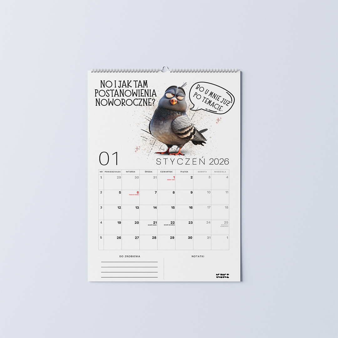 dla osób szukających oryginalnego, śmiesznego kalendarza 2026 w nowoczesnym stylu.