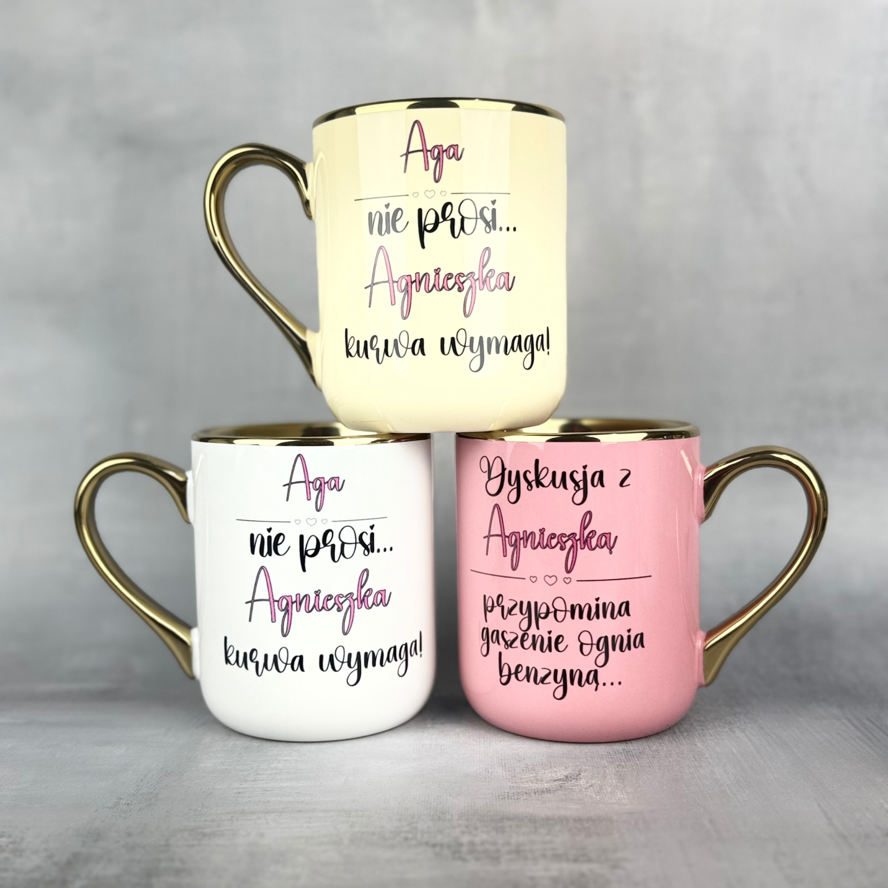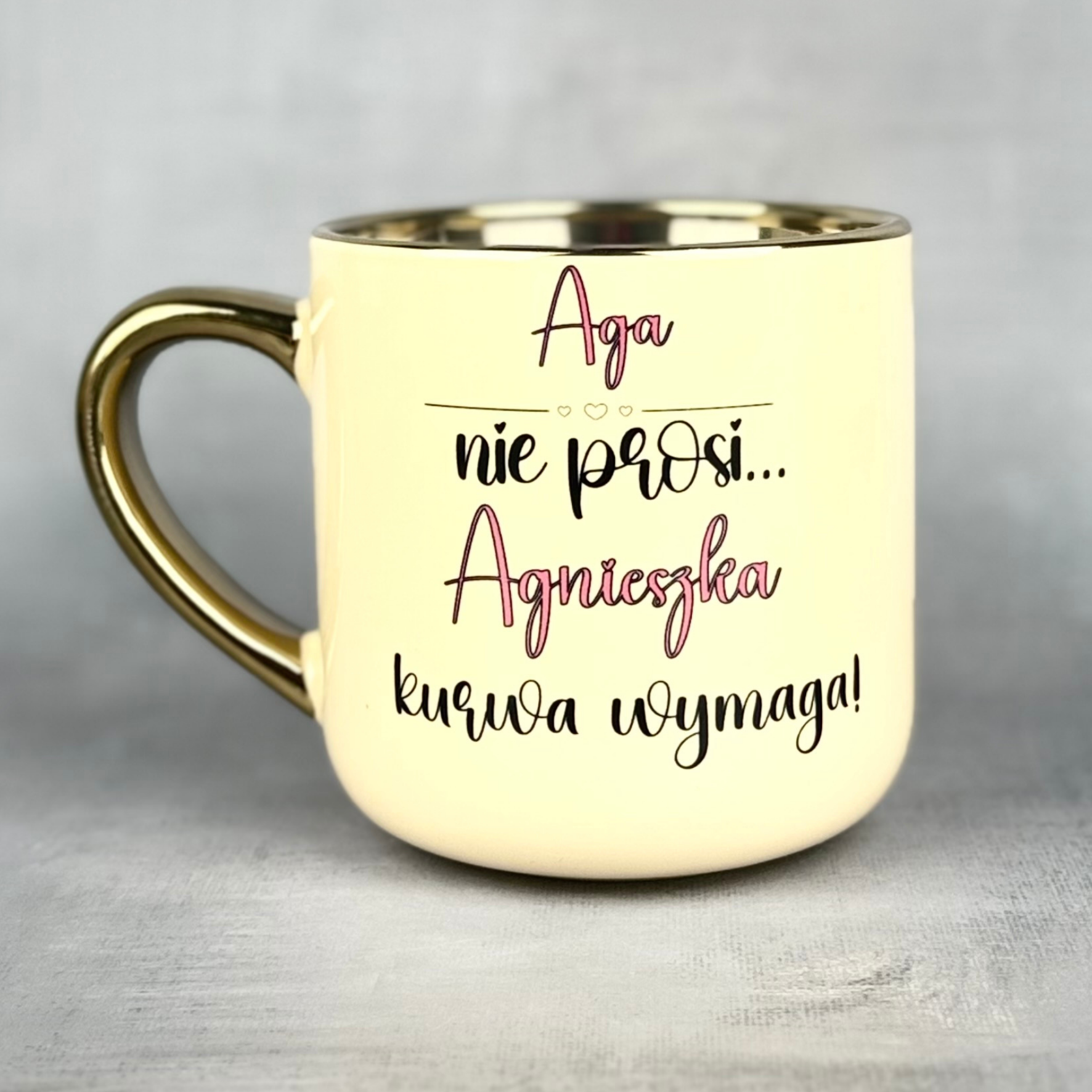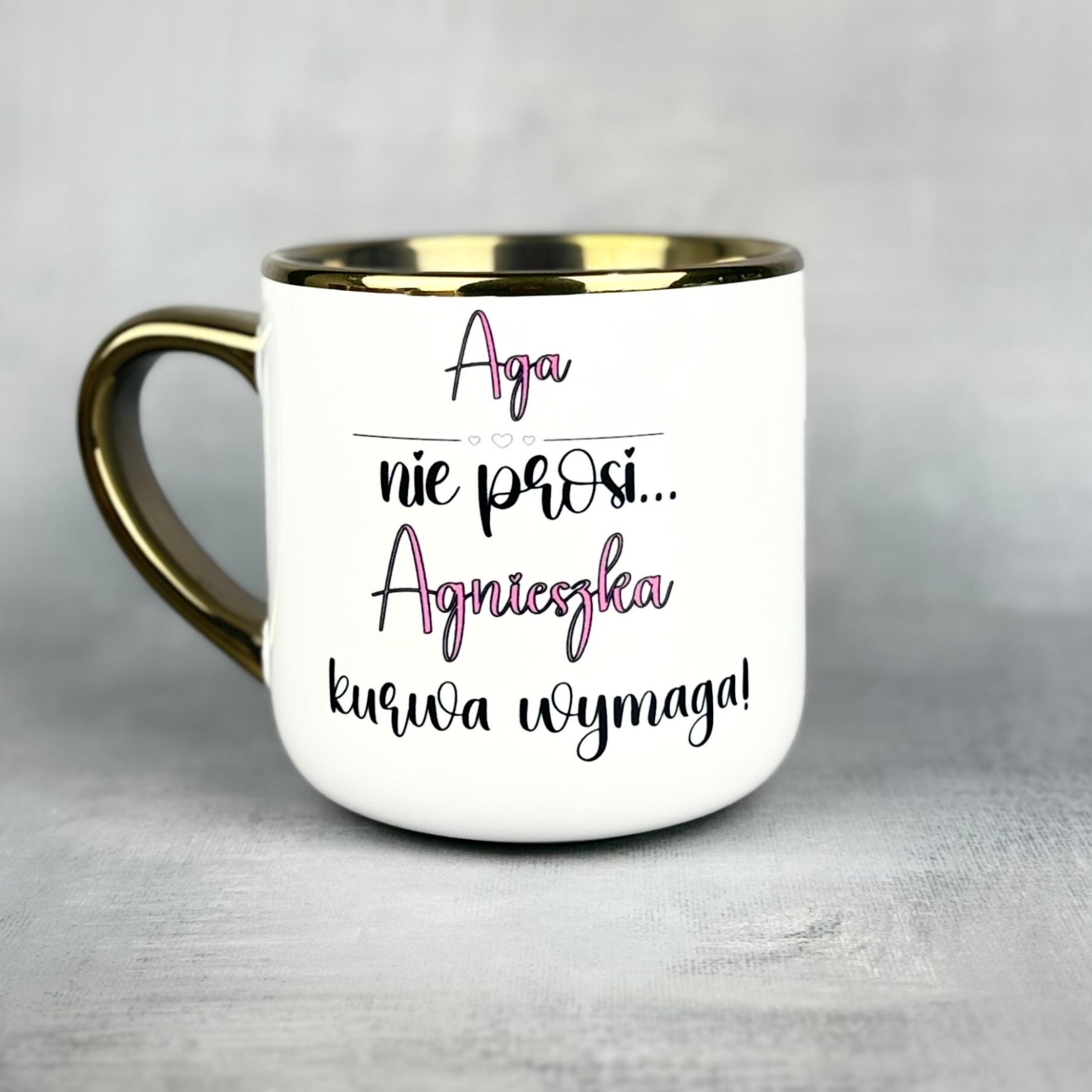 Kubek „AGA nie prosi… Agnieszka kurwa wymaga” – luksusowy akcent w biurze, który mówi za Ciebie ☕👑