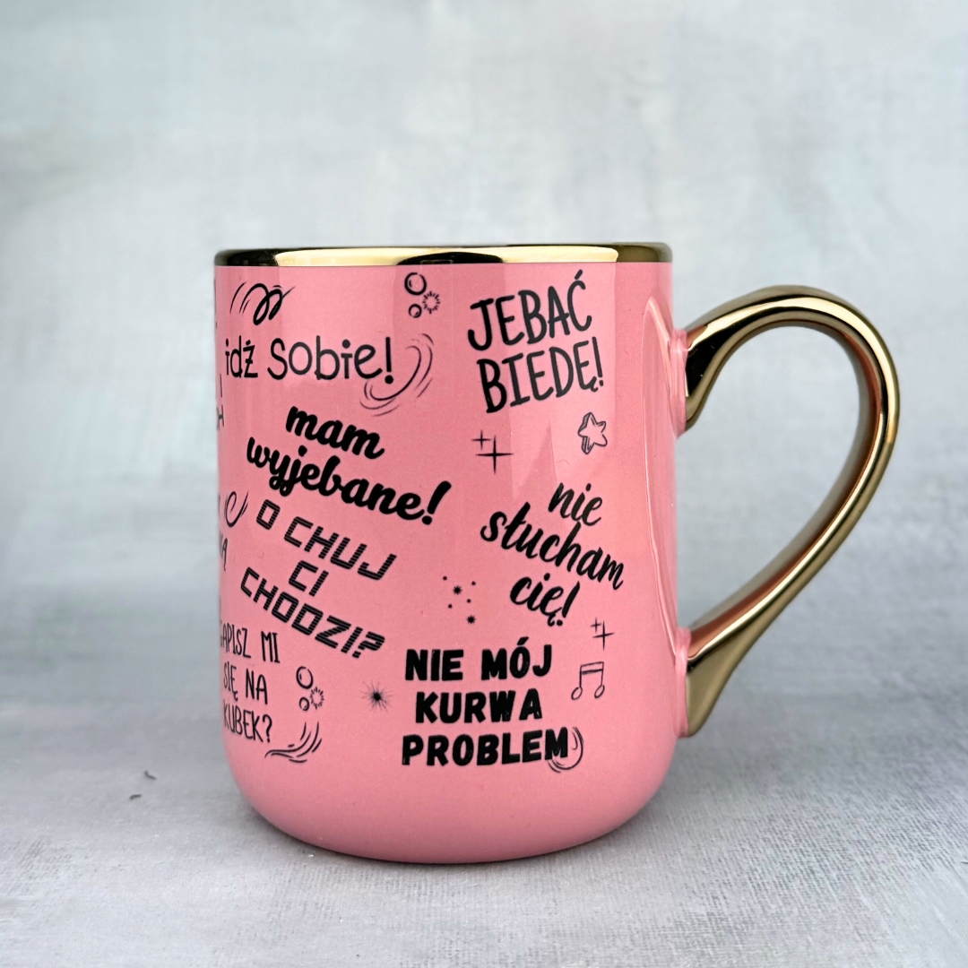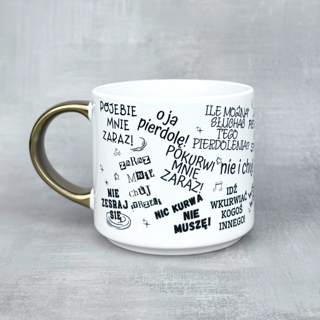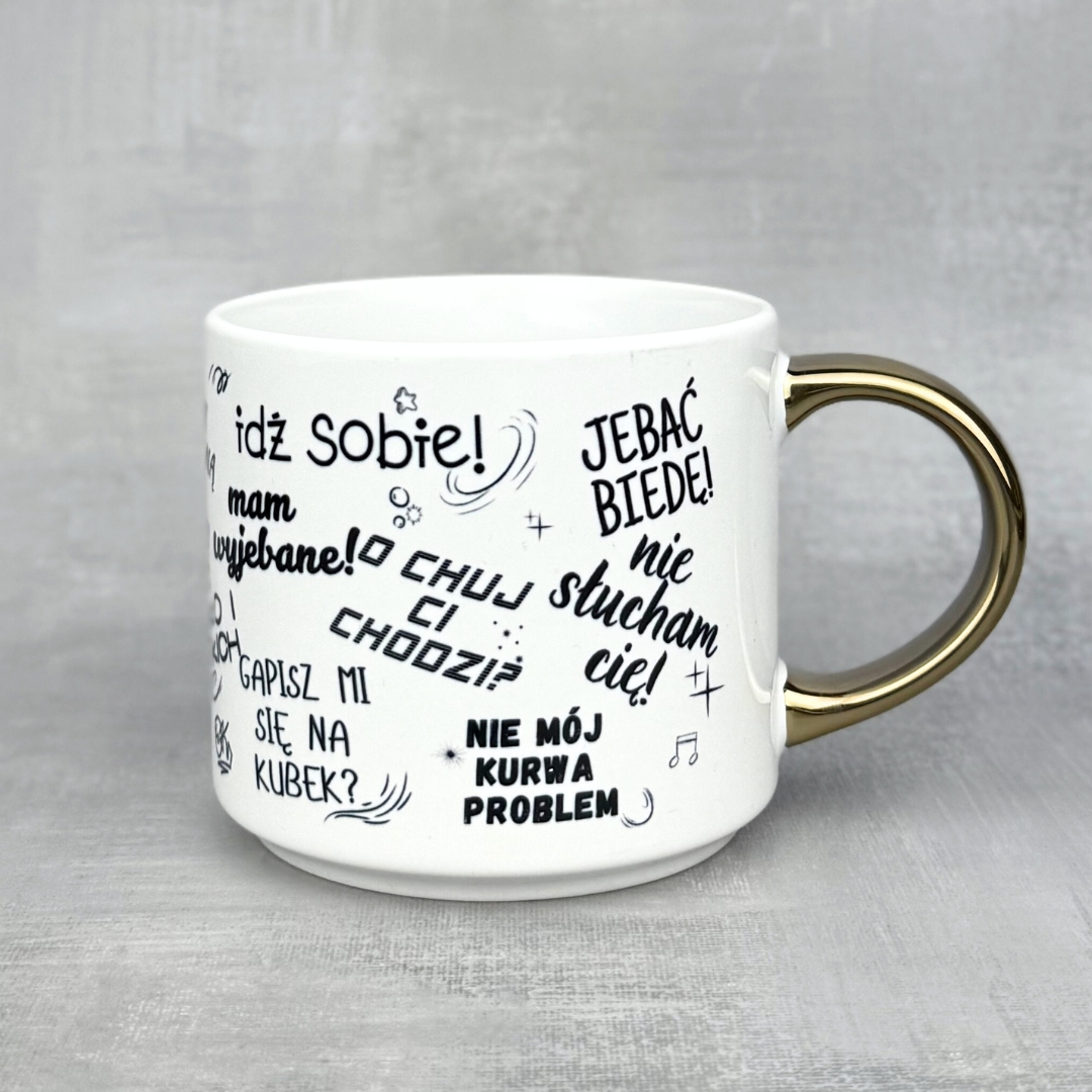 Kubek „Chamski” w odświeżonej wersji to propozycja dla osób z dystansem do siebie i otaczającego świata. Wykonany w pojemności 330 ml lub 450 ml, dostępny w wersji klasycznej białej, pastelowych kolorach oraz eleganckiej opcji ze złotym uchem. Nadruk, wykonany trwałą metodą sublimacji, gwarantuje wysoką jakość i odporność na codzienne użytkowanie. Idealny jako śmieszny prezent, który wywoła uśmiech i rozbawi każdego obdarowanego!