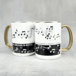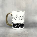 Całość otula kubek jak partytura‐wrap, a minimalistyczne nutki sprawiają, że z daleka wygląda niewinnie – dopiero z bliska ujawnia prawdziwy przekaz. Perfekcyjny dla tych, którzy pragną zachować spokój maestro, gdy orkiestra chaosu gra zbyt głośno.
