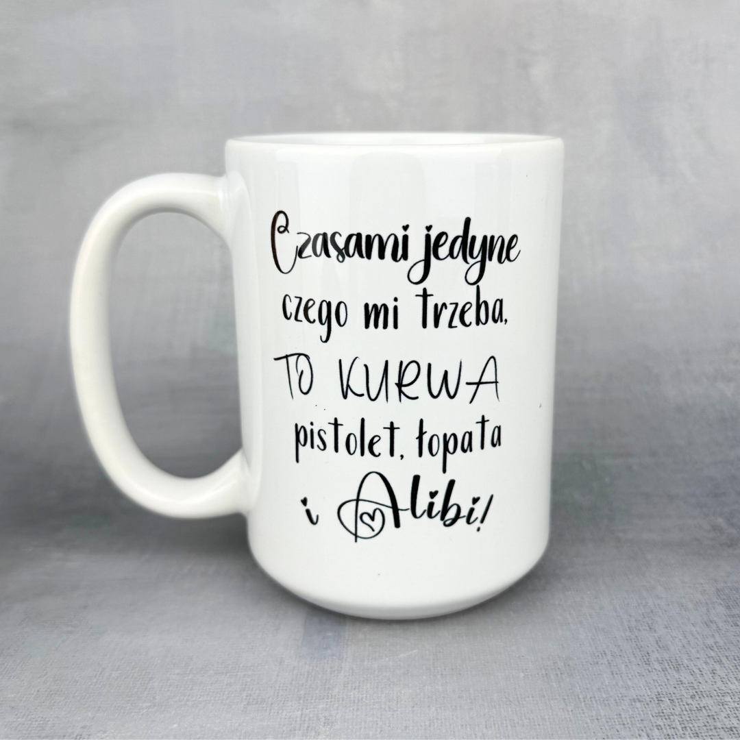 Szukasz prezentu, który wywoła salwę śmiechu i zostanie zapamiętany na długo? Kubek „Czasami jedyne czego mi trzeba… ALIBI (Mała Złośnica)” to strzał w dziesiątkę. Ostry, przewrotny cytat + uroczo-zadziorna ilustracja tworzą mieszankę, obok której nie da się przejść obojętnie. To śmieszny kubek z napisem, który idealnie sprawdzi się na biurku w pracy, w domowej kuchni czy jako poranny towarzysz kawy dla wszystkich posiadaczek (i fanów) mocnego poczucia humoru.