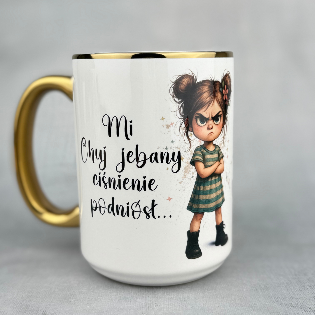 Kubek „Mała Złośnica” chuj jebany ciśnienie podniósł — śmieszny kubek ceramiczny dla niej, idealny na prezent i do biura