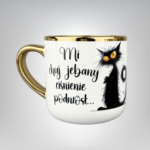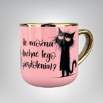 – 330/400 ml Elegant ze złotym uchem i rantem – designerski akcent na biurku.Nadruk sublimacyjny – wyraźne kolory i wysoka odporność na codzienne użytkowanie.