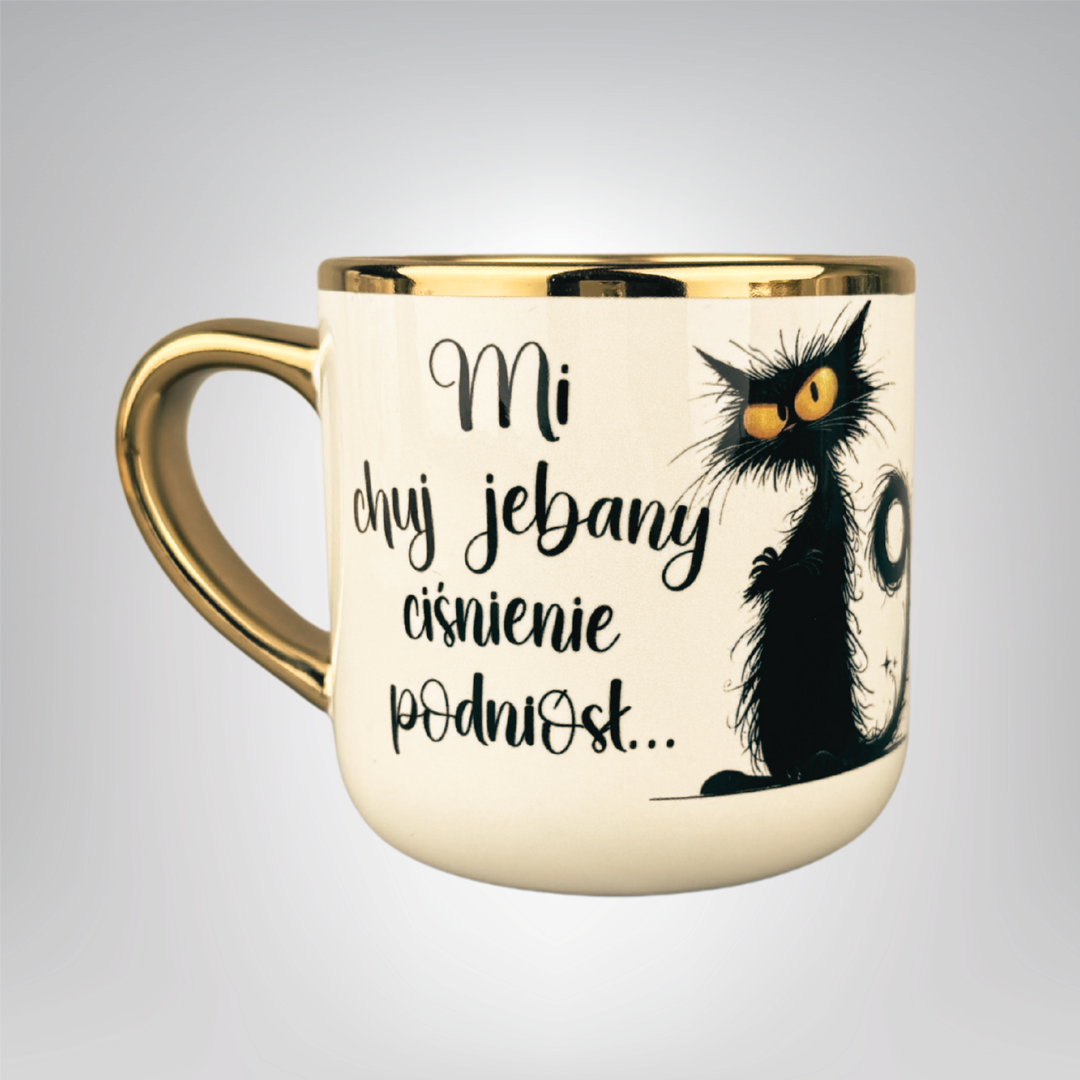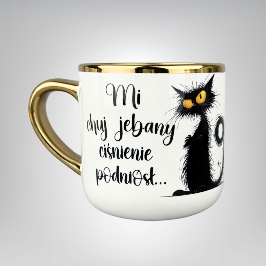 Szukasz śmiesznego kubka z kotem i bezkompromisowym napisem, który rozładuje każde biurowe napięcie? „Mi chj je*any ciśnienie podniósł (z kotem)**” to ceramiczny kubek z nadrukiem, który łączy humor, styl i wygodę użytkowania. Kultowa ilustracja wkurzonego kota + wyrazisty tekst = najlepszy prezent dla niej i dla niego, na urodziny, Mikołajki, Secret Santa, parapetówę czy jako „kubek do pracy”.