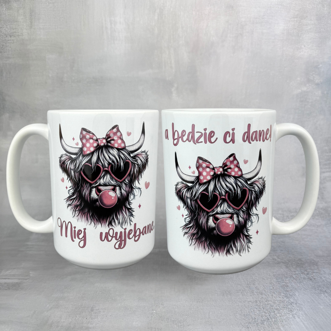 Kup teraz kubek „Miej wyje*ane, a będzie Ci dane” z odświeżoną grafiką krówki lub osła i ciesz się każdym dniem z uśmiechem na twarzy!