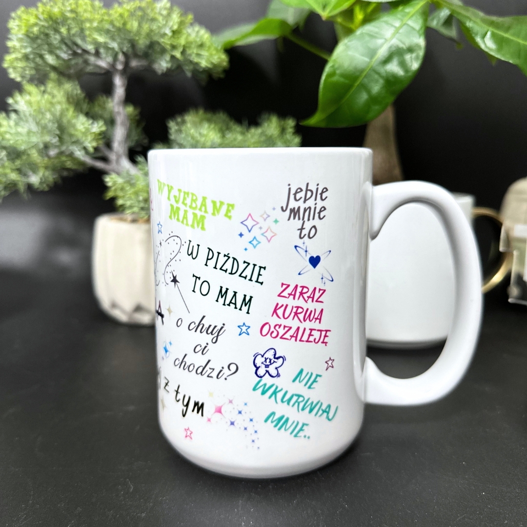 Dodaj trochę humoru do swojego dnia z kubkiem „Moje Zaklęcia” – niech Twoja kawa lub herbata stanie się magicznym rytuałem!