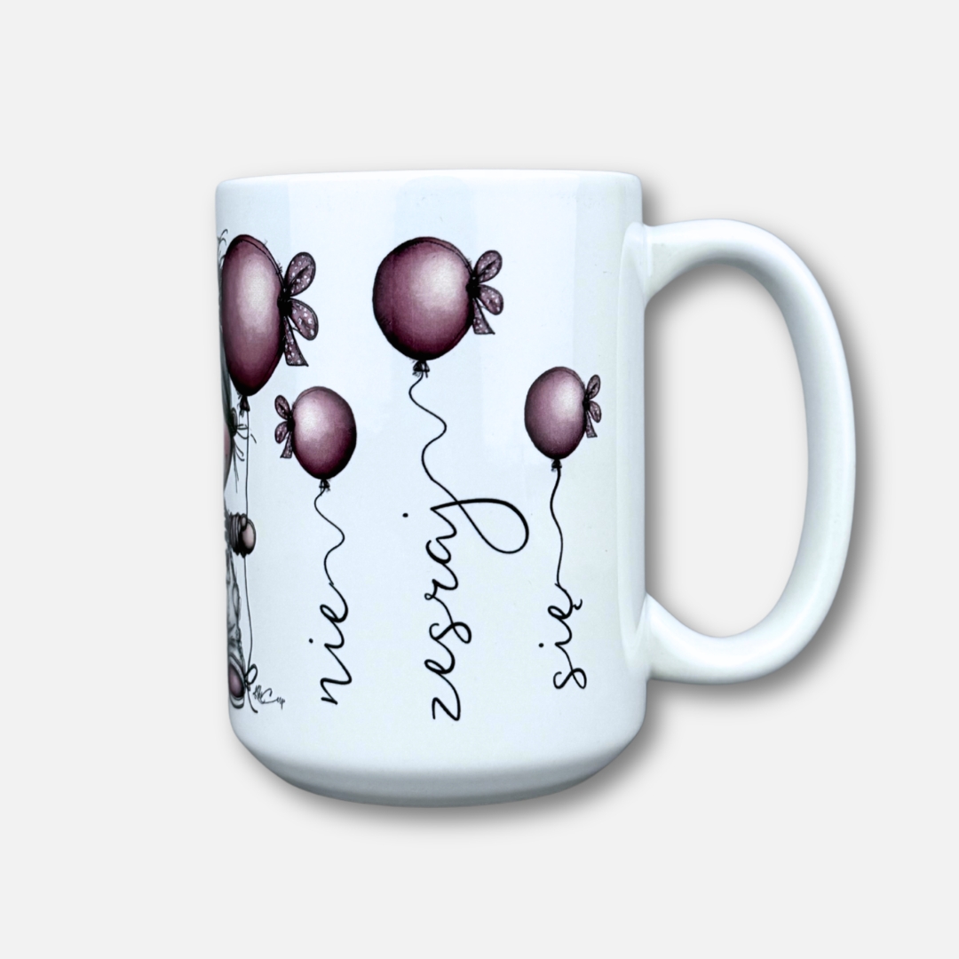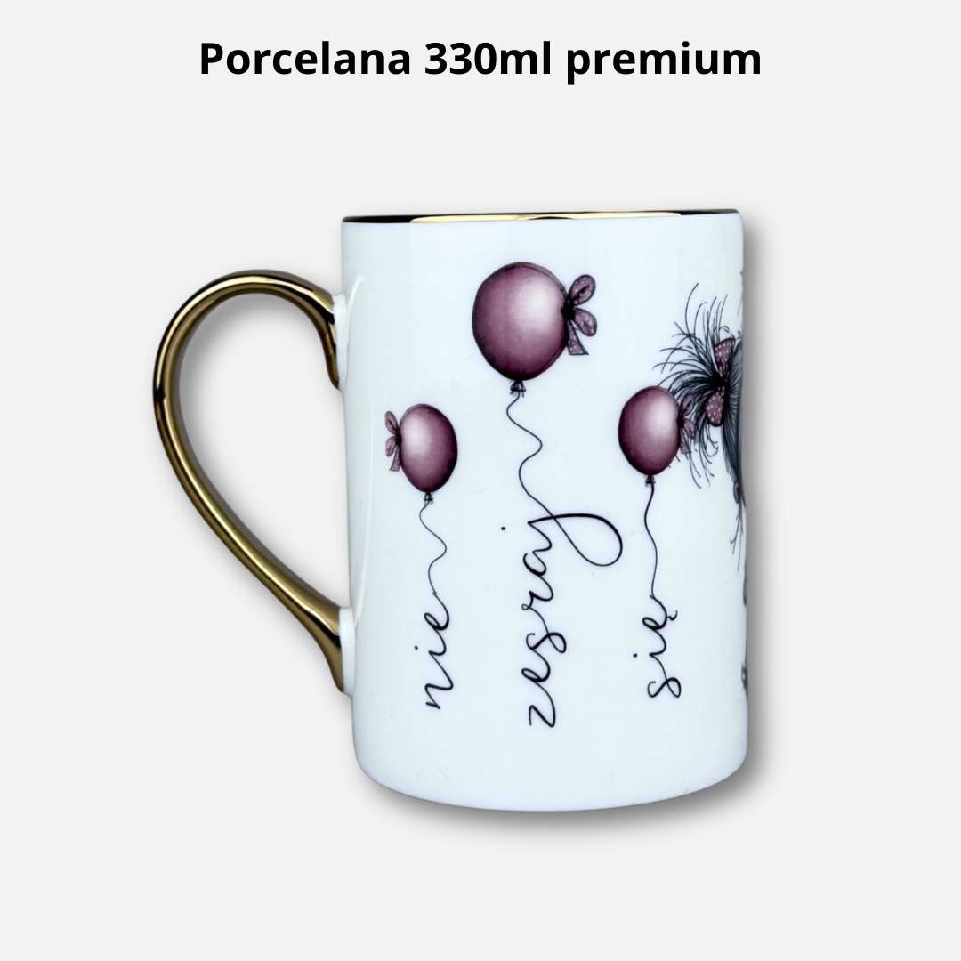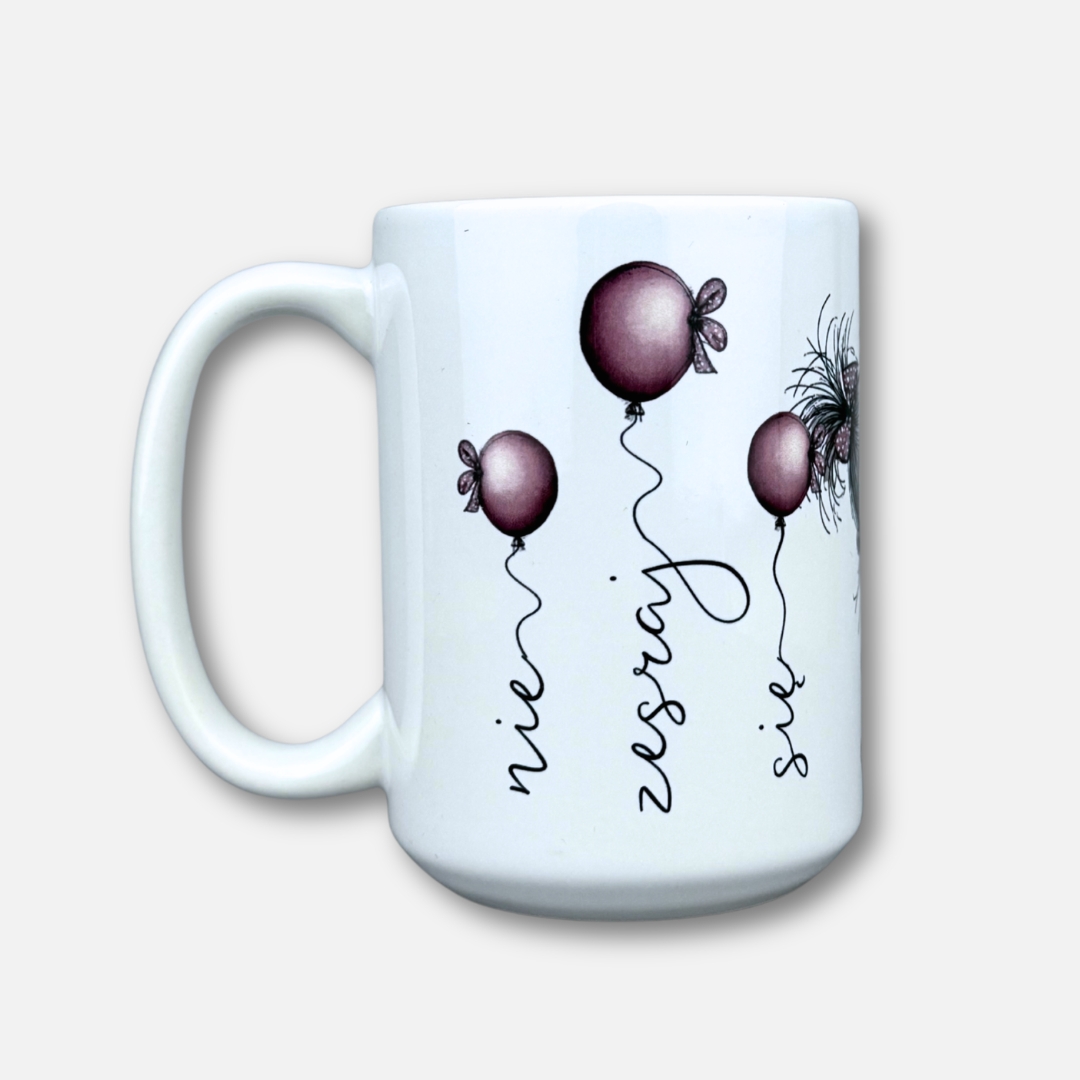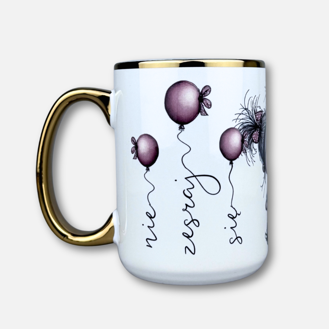 Kubek „Nie zesraj się (baloniki)” to propozycja dla osób, które lubią zaczynać dzień z uśmiechem i dużą dawką luzu. Zabawny napis w połączeniu z delikatnym, ilustracyjnym motywem baloników tworzy kontrast między uroczą grafiką a bezpośrednim tekstem – i właśnie to sprawia, że kubek przyciąga uwagę i wywołuje reakcje.