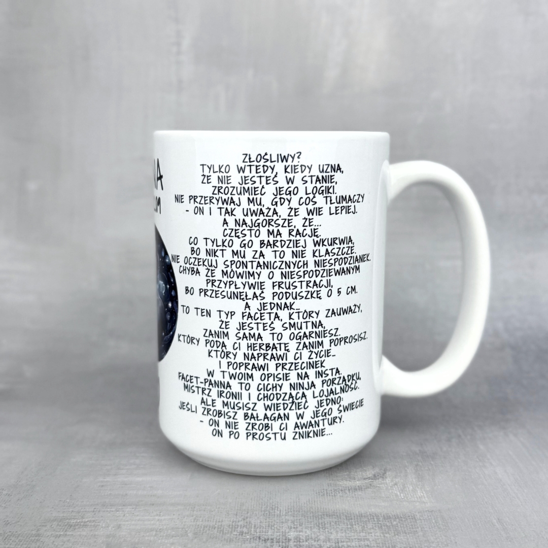 To świetny kubek na prezent dla Panny – niezależnie, czy chcesz rozbawić przyjaciela, siostrę, chłopaka, czy współpracownika. Każdy zodiakalny analityk doceni precyzyjne opisy i nutkę ironii zawartą w nadruku.