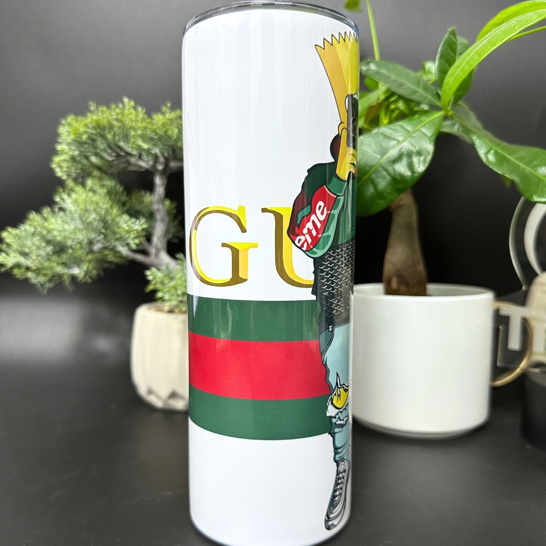 Dodaj stylu swoim codziennym rytuałom dzięki kubkowi termicznemu „Bart Supreme Gucci” i ciesz się modnym designem każdego dnia!