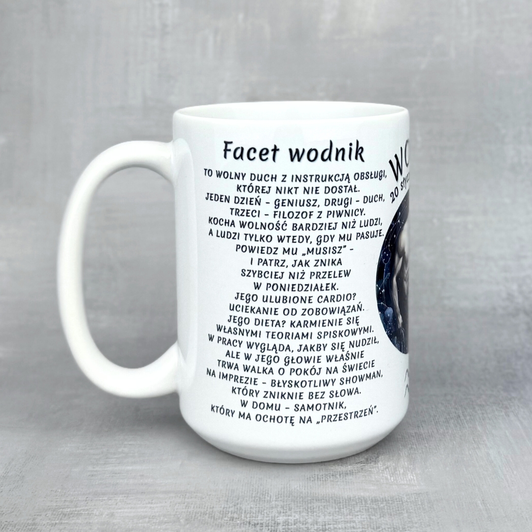 Opis znaków zodiaku „Wodnik” to żartobliwa i trafna charakterystyka tej wyjątkowej osobowości – zarówno w wersji kobiecej, jak i męskiej. To idealny kubek na prezent z okazji urodzin, Dnia Kobiet, Dnia Chłopaka, świąt czy… bez okazji! Kubek „Wodnik” świetnie sprawdzi się też w biurze – jako rozbrajający komentarz do zodiakalnych realiów dnia codziennego.
