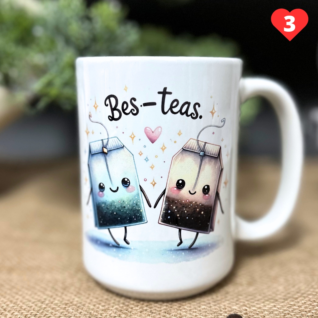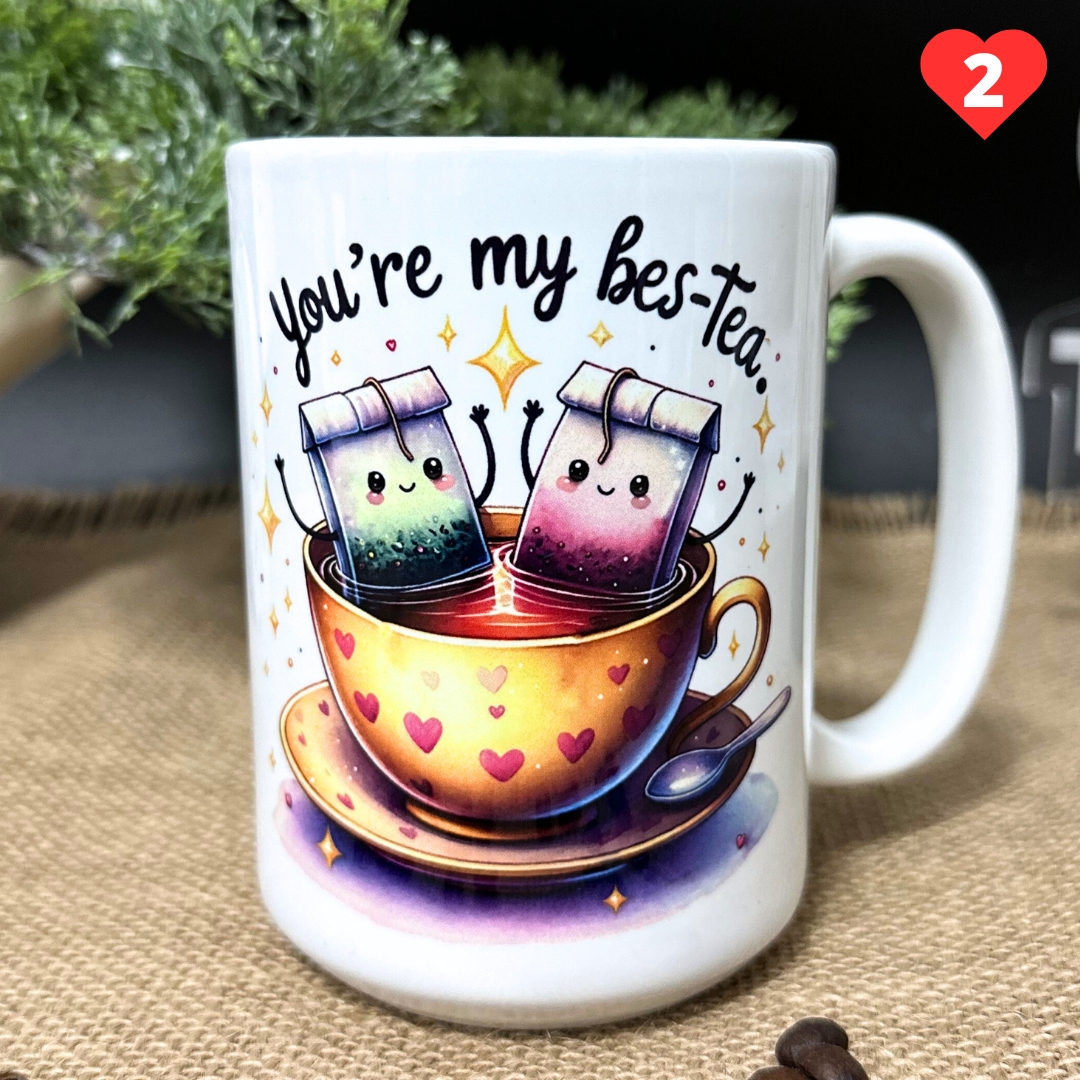 2️⃣ You’re My Bes-Tea – dwie herbaty w filiżance, celebrujące piękno przyjaźni.